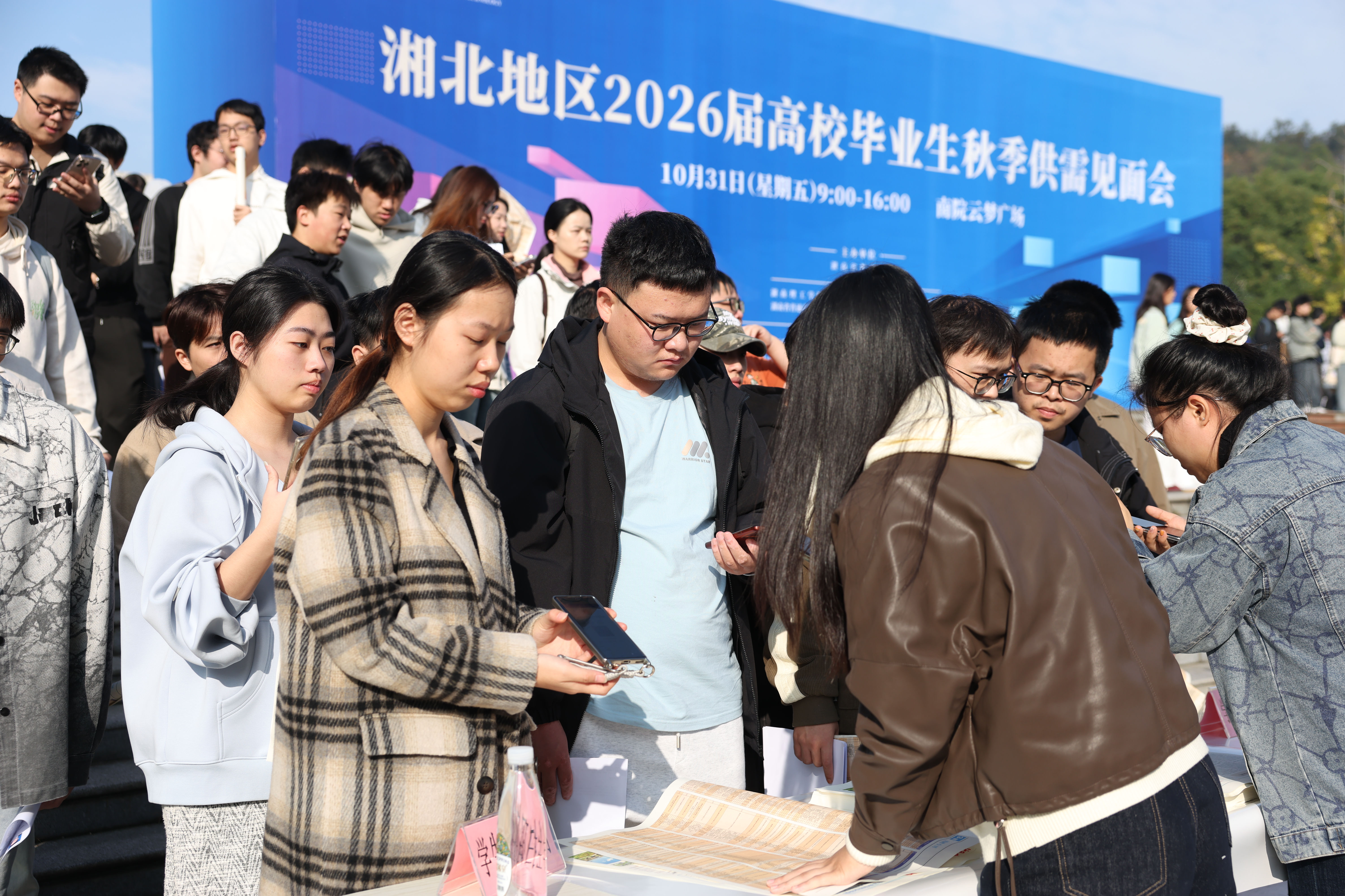 校园网讯 10月31日,湘北地区2026届高校毕业生秋季供需见面会在学校云梦广场举行。本次招聘会吸引了326家省内外企事业单位参与,涵盖制造业、教育业、信息传输、软件和信息技术服务业、建筑业等多个专业领域,为学校毕业生提供了多元化的就业选择。校党委书记张国云、校长曾祥君和在家校领导谢贵辉、徐小立、徐振祥、汤小红、丁跃浇、刘长辉、胡文静等到现场指导,与用人单位代表亲切交谈,感谢相关用人单位对学校大力支持,深...