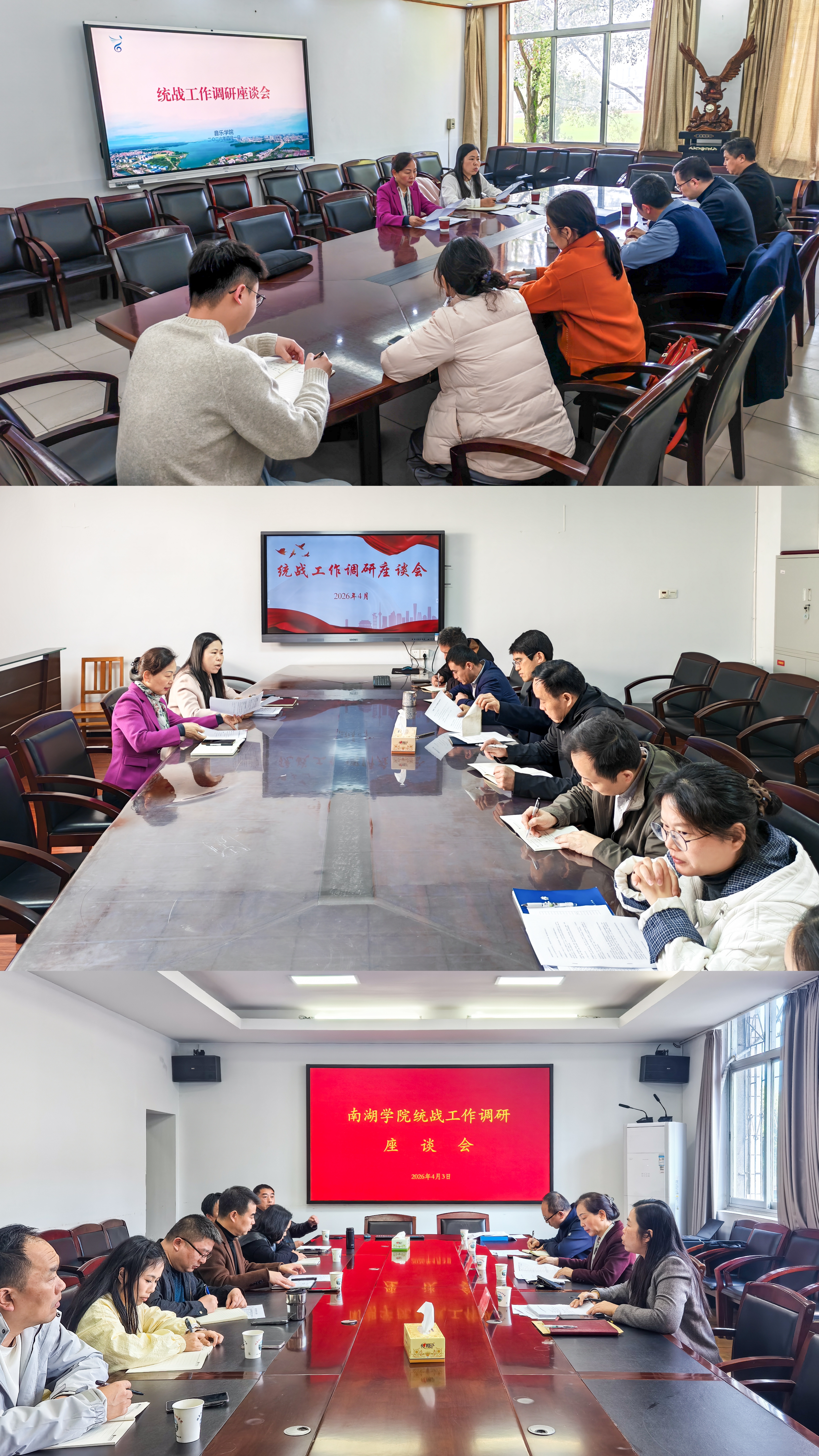 校园网讯 近日,校党委副书记徐小立先后到文学与新闻传播学院、经济与管理学院、音乐学院、南湖学院专题调研统战工作。统战部相关负责人陪同调研。各学院党委负责人、院长、统战委员、分管学生工作副书记及相关工作人员分别参加调研座谈。本次调研旨在深入二级学院了解统战工作实际情况,通过“听、看、问、谈”等方式,摸清底数、总结经验、发现问题、听取建议。调研期间,徐小立一行听取了各学院关于统战工作体制机制运行、党...