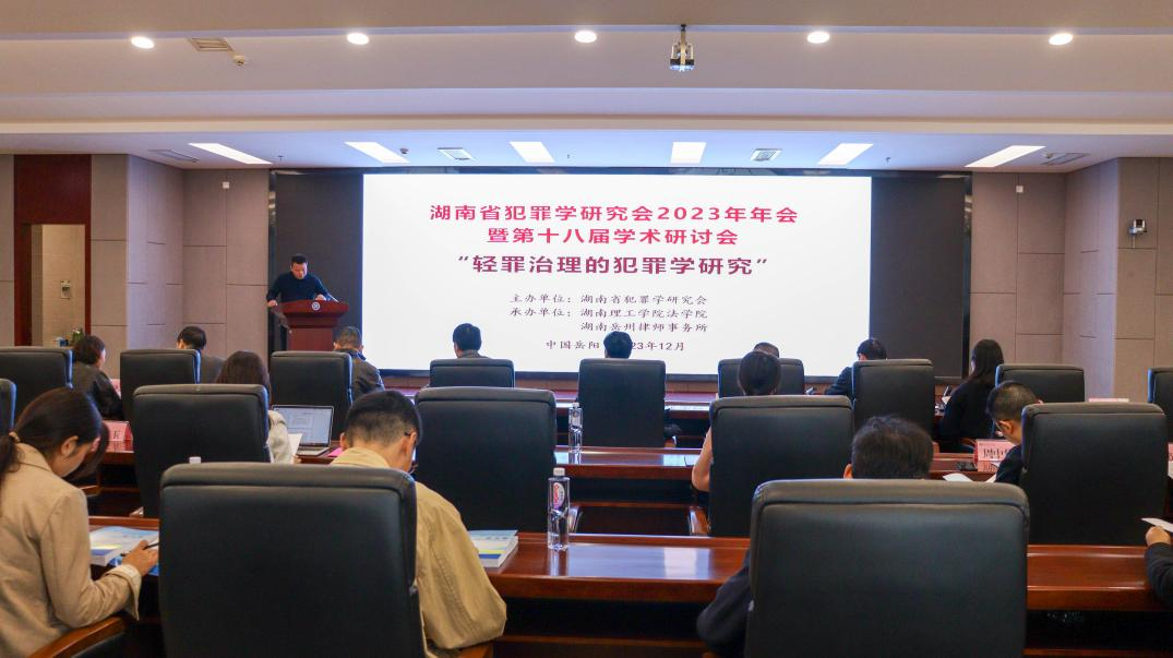 会议开幕式由湖南省犯罪学研究会副会长、我校法学院党委书记喻义东教授主持。学校副校长汤小红教授,湖南省犯罪学研究会会长、湖南大学犯罪学研究所所长王燕飞教授,湖南岳州律师事务党总支书记、主任张忠伟,我校法学院院长周四丁教授出席会议并做讲话;中国法学会刑法学研究会副会长、武汉大学法学院教授何荣功围绕“轻罪治理的刑法学研究总置评”线上进行主旨发言;湖南省人民检察院、岳阳市人民检察院、岳阳市中级人民法院、岳阳市司法局、宁乡人民检察院、湖南大学犯罪学研究所、湘潭大学法学院、湖南理工学院法学院、长沙学院法学院、长沙理工大学法学院、南华大学法律系、衡阳市法学会犯罪学研究会、湘潭市预防犯罪与刑法学研究会等全省各地专家学者、政法机关实务界代表、律师代表、高校法学生代表等120多人参加本次现场会议。