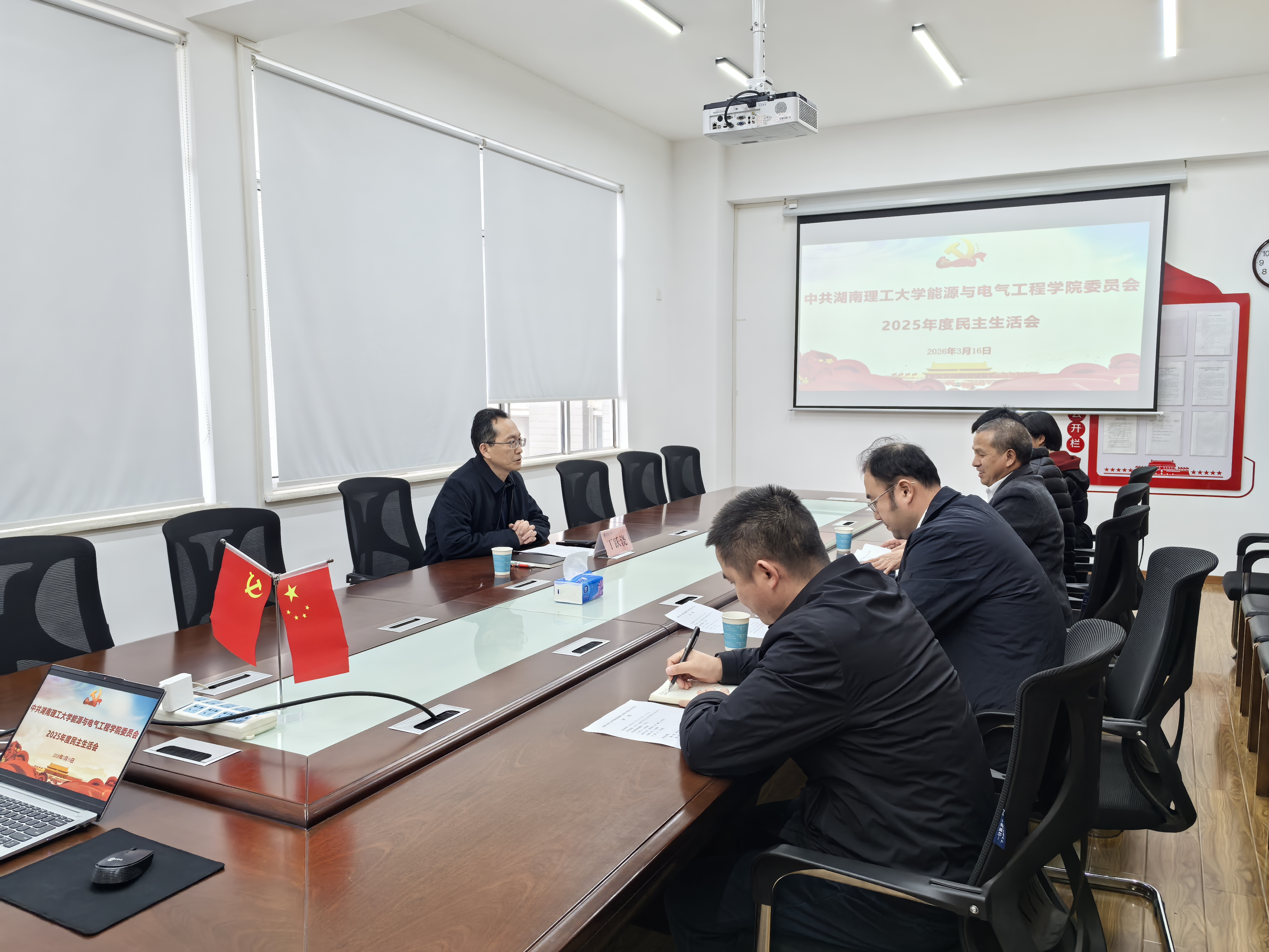 校园网讯 3月16日下午,能源与电气工程学院党委班子召开2025年度民主生活会,校党委委员、副校长丁跃浇到会指导。 会上,学院党委负责人报告了准备情况,代表班子围绕“五个带头”深入查摆问题,剖析根源并提出整改措施。班子成员结合自身实际,逐一进行个人对照检查,严肃开展批评与自我批评。 丁跃浇充分肯定会议质量,指出准备充分、问题查摆结合工作实际,展现了班子良好政治生态与积极风貌。他强调,学院党委班子