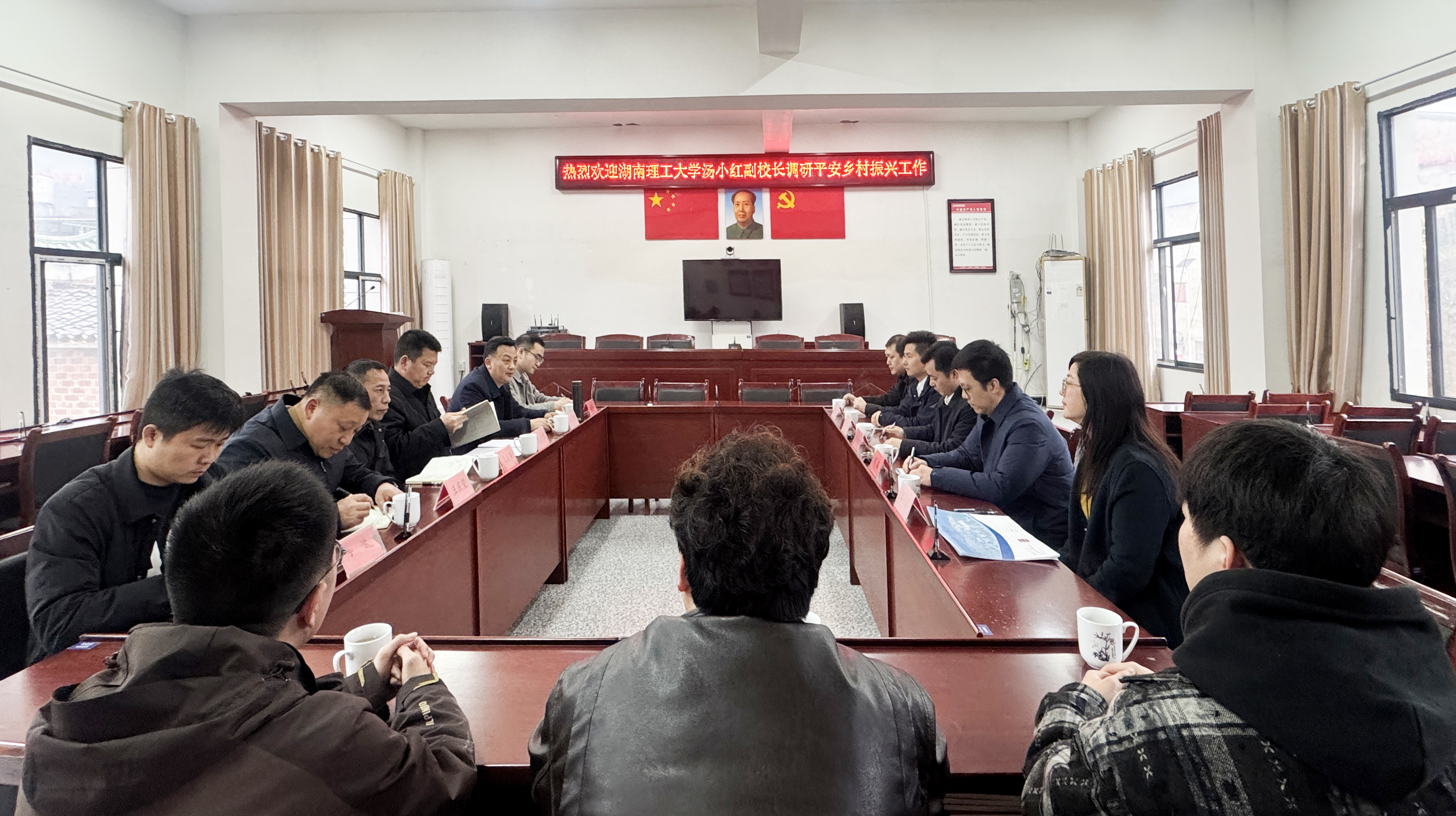 校园网讯 3月20日,副校长汤小红率研究生工作部相关负责人及第十三批研究生志愿支教团成员,赴平江县虹桥镇平安村开展乡村振兴工作专题调研,并同步启动研究生志愿支教送教活动。 汤小红一行实地察看了平安小学校园环境、教学场所及教职工宿舍,详细了解学校硬件设施与师生生活条件。驻村工作队现场汇报了巩固拓展脱贫攻坚成果同乡村振兴有效衔接工作的推进情况。 汤小红向奋战在乡村振兴一线的村镇领导及驻村工作队员致以